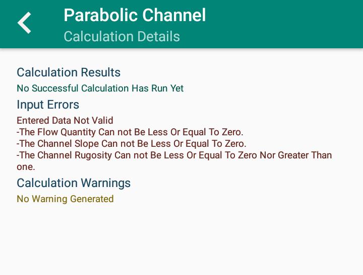 포물선 채널 : 유량, 유량 깊이, 채널 모양의 곡선 인자, 채널 경사.