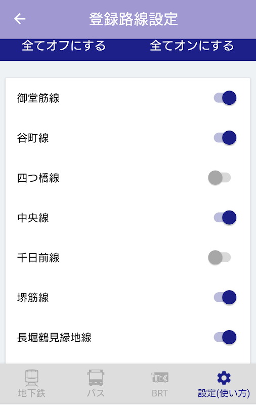 Osaka Metro(지하철・뉴트램)의 각 노선의 운행 정보를 푸시 통지로 알려 드리겠습니다. 노선, 요일, 시간 등을 원하는대로 설정할 수 있습니다.