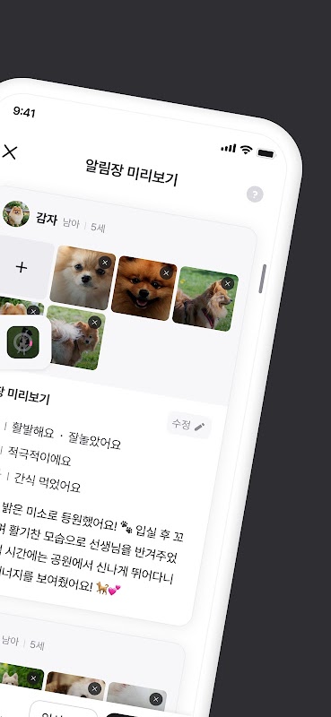 아울 알림장은 선생님이 반려동물의 하루를 간편하게 작성하고, 보호자님께 따뜻하게 전달할 수 있도록 도와드려요.