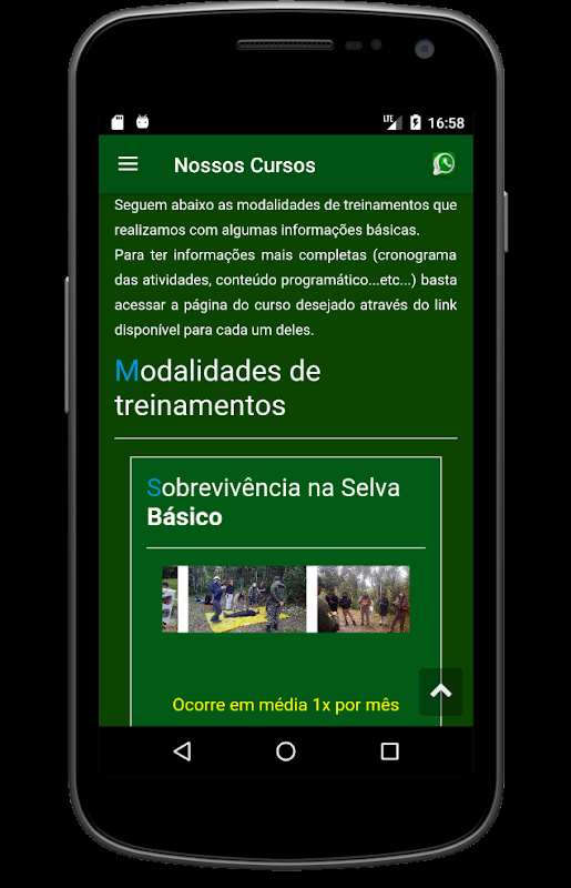 강의, 교육 일정, 사용자가 참여한 마지막 과정, 재료 팁, 장비 팁, 일반 팁, 직원, 기타 기능 중 연락처 (이메일 및 whatsapp)를 사용할 수 있습니다. 다운로드하고 설치하기 만하면됩니다. 당신은 당신의 손끝에서 모험을 할 수 있습니다.