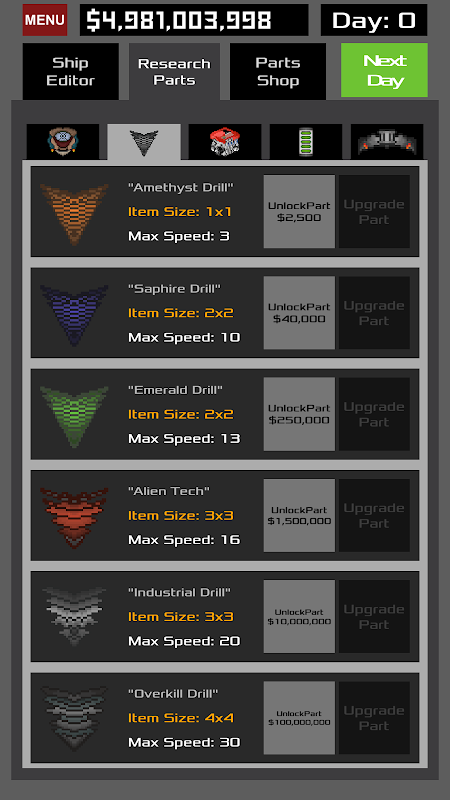 더 많은 엔진, 부스터, 배터리를 장착할 수 있는 더 나은 함선을 잠금 해제하세요. 6척의 선박, 25개의 부품 및 243개의 업그레이드를 잠금 해제하십시오.