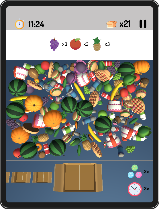 항목을 찾아 배송 상자로 이동하여 주문을 처리합니다. 시간이 끝날 때까지 모두 포장하십시오! 강력한 부스터를 사용하여 레벨을 완료하세요. 이 재미있고 영리한 퍼즐 게임을 통해 두뇌에 도전할 수 있는 수십 개의 레벨을 설계했습니다.
