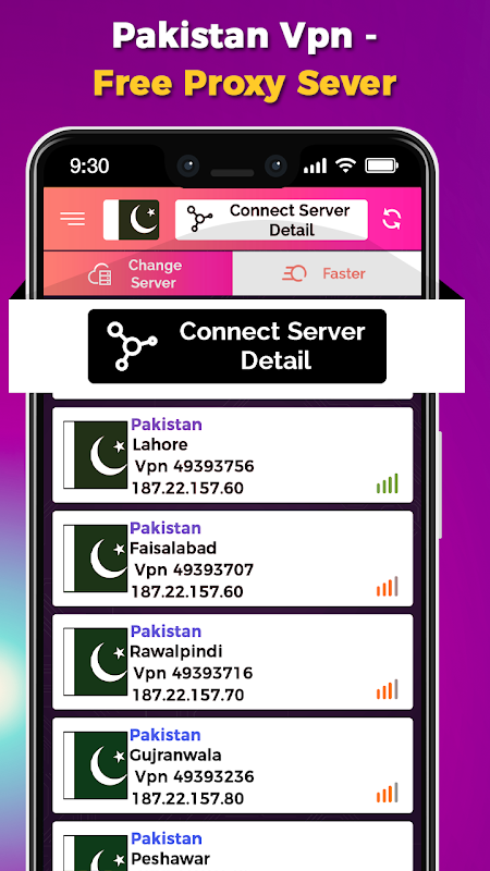 browsing with Pakistan Vpn-Free Proxy Sever is the fastest network of any Pakistan country. Find all latest information like news, videos and many more sites related to Pakistan country. An application can particularly design considering the Intuitive User Interface while using it. your device and network are safe to use while you using or connected with any servers.
