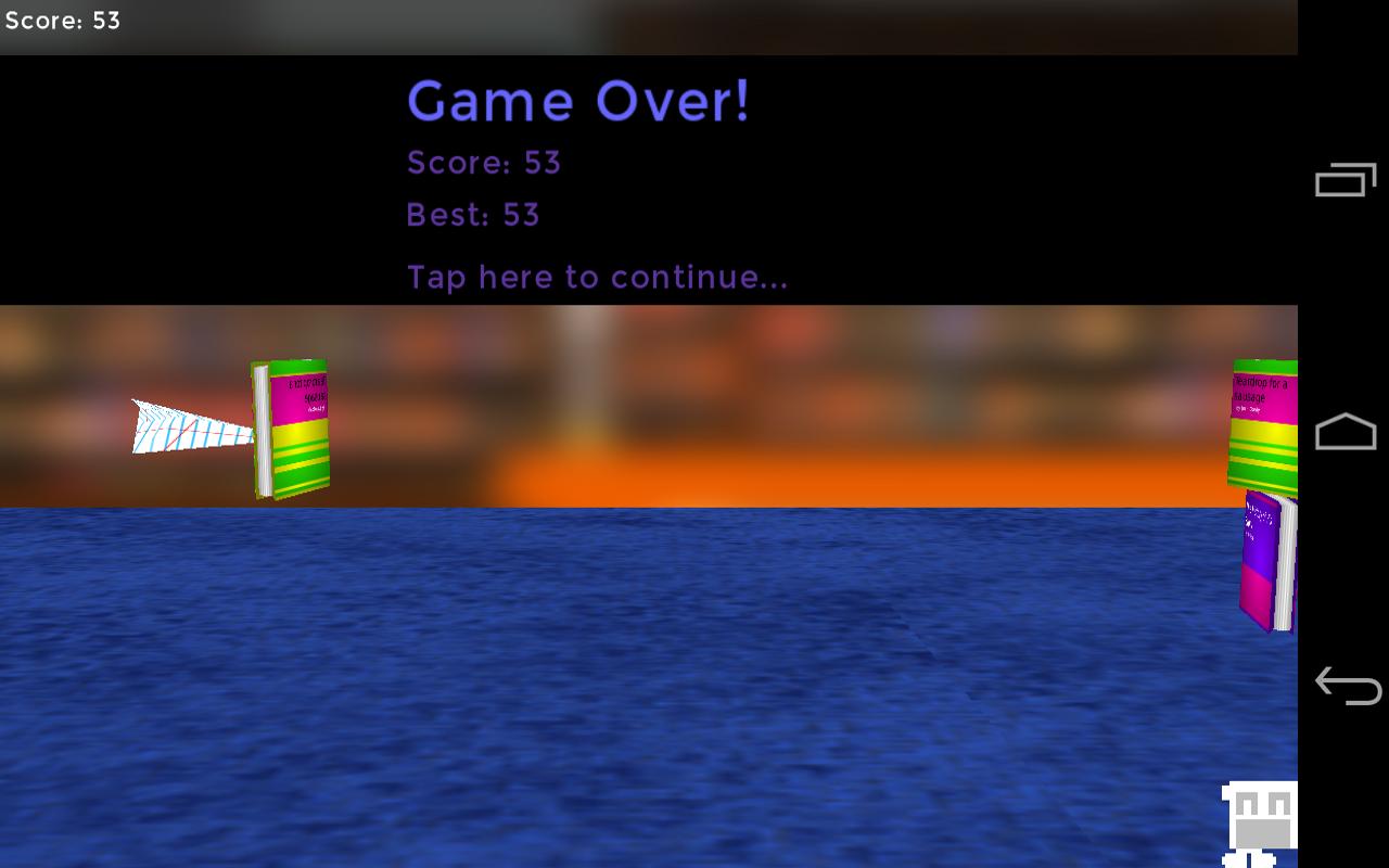 Help guide the paper airplane through the storm of books in this tablet-optimized fun and simple arcade game. The controls are simple: Tap to fly up, release to go down. If you hit a book, go out of the screen, or hit the ground, it's Game Over!