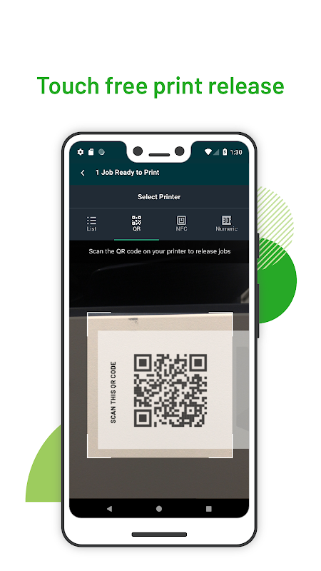 -프린터로 가서 NFC 스티커를 탭하거나 QR 코드를 스캔하거나 MFD 터치 스크린을 사용하기 만하면됩니다. 이 앱은 비접촉식 / 접촉 식 해제 방법을 제공합니다.