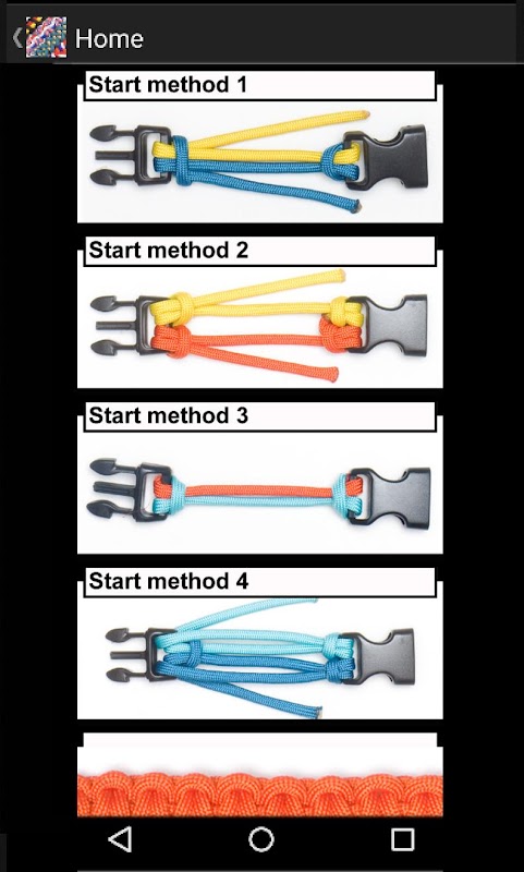 In addition, 4 different methods to start a Paracord bracelet are shown in easy to follow steps.