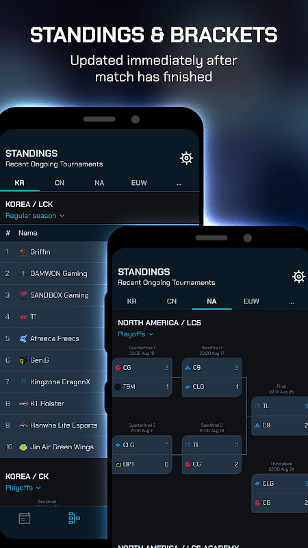 * 좋아하는 팀을 팔로우하고 해당 팀이 경기에 참여할 때 알림을 받으세요.