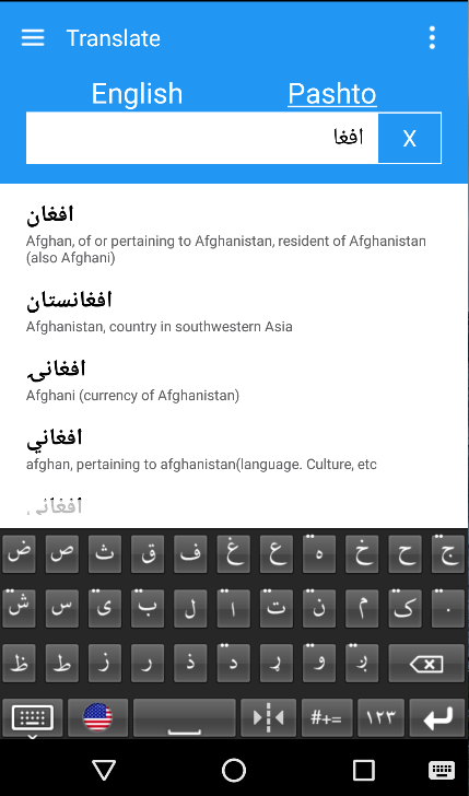 전제 조건 : 파슈토어 단어를 검색 할 수 파슈토어 키보드를 설치하십시오. 우리는 또한 무료로 플레이 스토어에 파슈토어 키보드를 제공하고 있습니다.