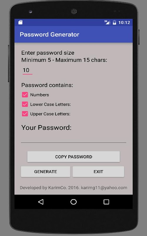 With this app you can generate passwords.