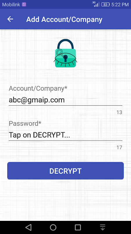 Password Keeper is an Application in which you can save your's different account's (like you email accounts) passwords securely. You can take backup and store this backup to your cloud drives.