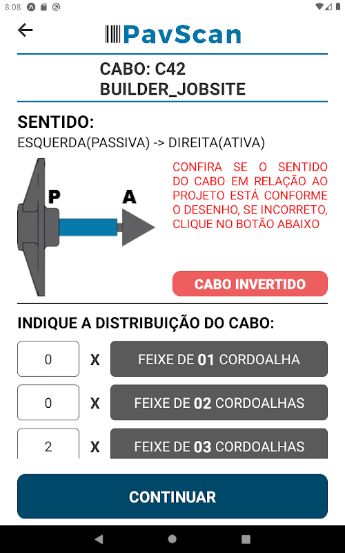 Além da solução do CaboMestre e Caderix, que simplifica a montagem, o Sistema PavScan engloba também o referente aplicativo de conferência e de montagem, o aplicativo PavScan, primeiro processo informatizado no mundo para conferência e montagem da protensão não-aderente, que pela leitura do código de barras do Caderix, montado conforme as informações do Cabo Mestre, registra o estado de como o cabo está montado em obra, identificando não conformidades instantaneamente e emitindo relatórios, de forma transparente e 100% confiável!