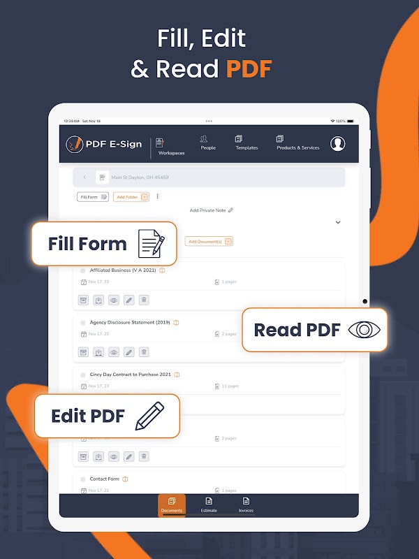 PDF E-Sign 앱으로 전자 서명의 잠재력을 최대한 활용해 보세요. 당사의 전자 서명 앱을 사용하면 언제 어디서나 원활하게 PDF 문서에 서명할 수 있습니다. 최소한의 데이터 입력으로 모바일 장치에서 직접 전체 계약서, 견적서, 송장을 작성하세요. PDF E-Sign 앱은 포괄적인 문서 작성 및 서명 기능을 손에 쥐고 있어 전문적인 문서 관리에 있어 비교할 수 없는 유연성을 제공합니다. PDF 채우기 및 서명 기능을 사용하여 쉽게 PDF 문서에 서명하고, 계약을 봉인하고, 전달하세요.