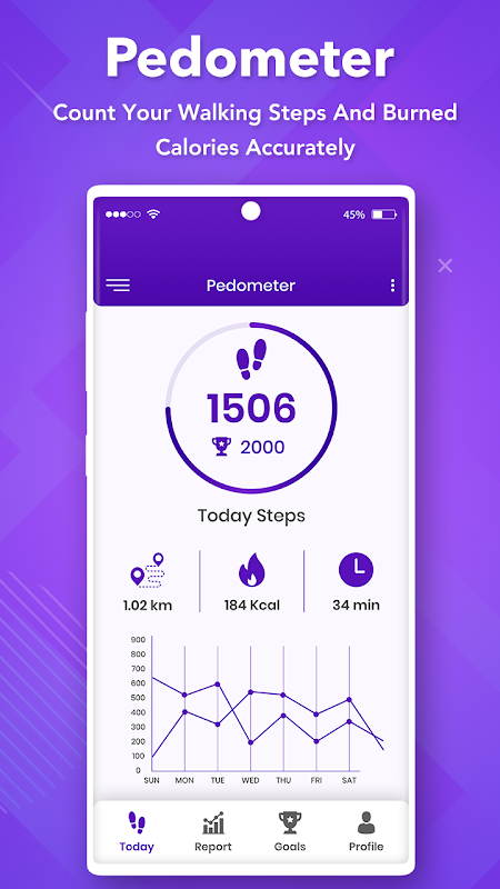 걸음 수 카운터-보수계 앱은 일일 걸음 수와 소모 된 칼로리를 계산하는 작은 앱입니다. 또한 활동, 거리 및 걷는 시간을 추적합니다.