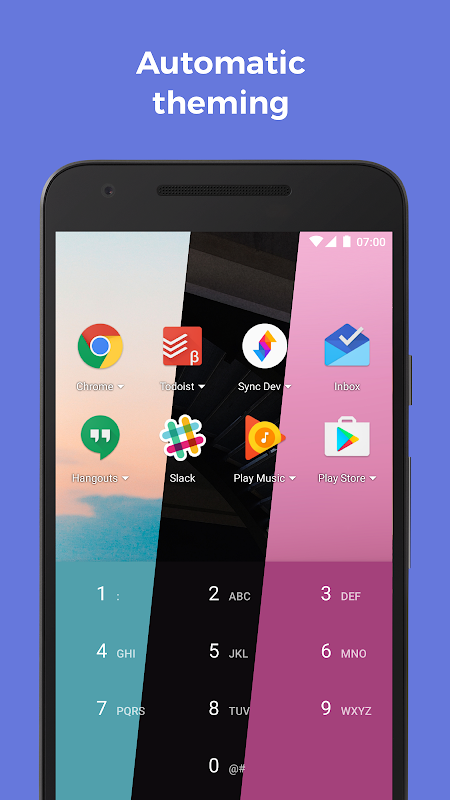 True to Material Design principles, Peek Launcher grabs the colors from your wallpaper and adapts itself accordingly. Every wallpaper gives the launcher a new look. If thats not enough you can also go in and customize the colors yourself.