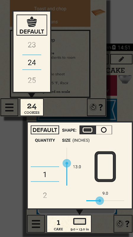 • 성분의 양에 규모 : 만 초콜릿 칩의 절반 가방을 가지고? 문제 없어. 규모에 초콜릿 칩을 넣고 조리법을 확장 할 수있는 응용 프로그램을 말한다.