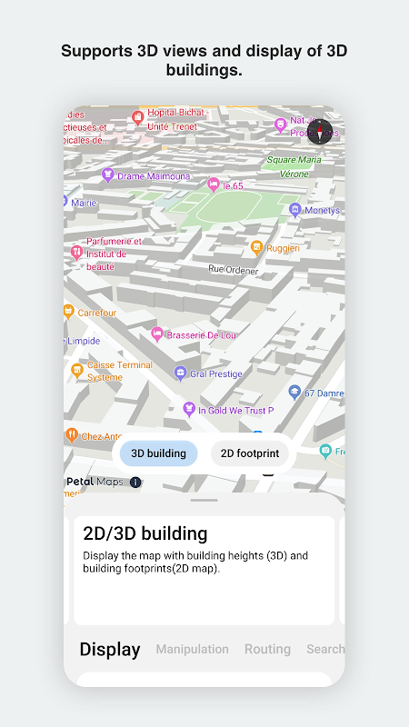 Petal Maps Platform provides map capabilities that work across different platforms and devices. It currently supports Android, and will support iOS in the near future. Petal Maps Platform is available in over 200 countries and regions around the world, and supports more than 70 languages. It is a global open map platform that includes over 190 million POIs, as well as over 80 million kilometers of roads globally. Its core functions include map display, place search, positioning, and route planning. Map display includes map style customization, providing over 100 elements for customizing your map. Place search includes time zone search, nearby place search, geocoding, and keyword search. Positioning includes fused location, Super GNSS, low-power geofencing, lane-level location for in-vehicle navigation, and precise indoor location. Route planning includes route query, ETA calculation, traffic condition query, and navigation. Petal Maps Platform also provides global after-sales services. This demo is developed based on the open capabilities of Petal Maps Platform, and gives developers a taste of the powerful capabilities of the platform.