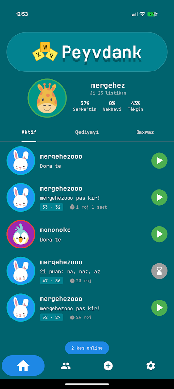 Scrabble bi Kurdî! Bi hevalên xwe re zindî bilîze û peyvên nû hîn bibe.