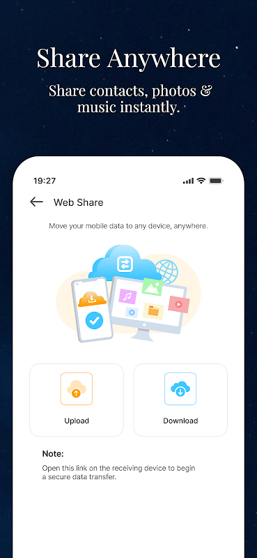모든 데이터 전송은 로컬 Wi-Fi 네트워크 또는 핫스팟을 사용하여 기기 간에 직접 이루어집니다. 클라우드 업로드, 계정, 추적 기능이 없습니다. 귀하의 정보는 100% 기기에 저장되므로 안전한 휴대폰 복제 및 스마트폰 교체 도구입니다.