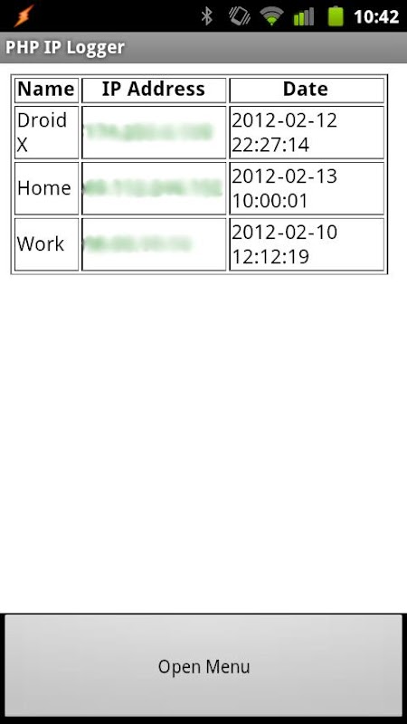 This app works by deploying a simple php script which stores the entries in a MySQL database. The php script can be found at http://www.djlactose.com/myip.phps