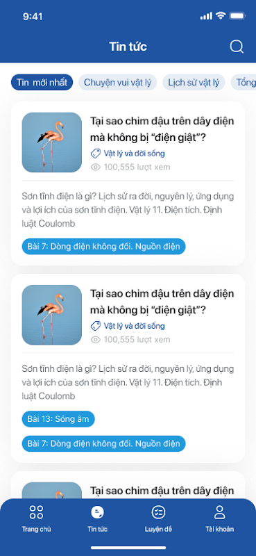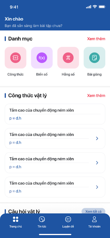 CongThucVatLy.com 웹사이트의 첫 번째 모바일 애플리케이션 버전