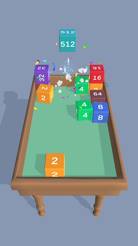 The swipe direction indicates the wind direction. Merge cubes with the same number to get a new one with a doubled number, as in the game 2048.
