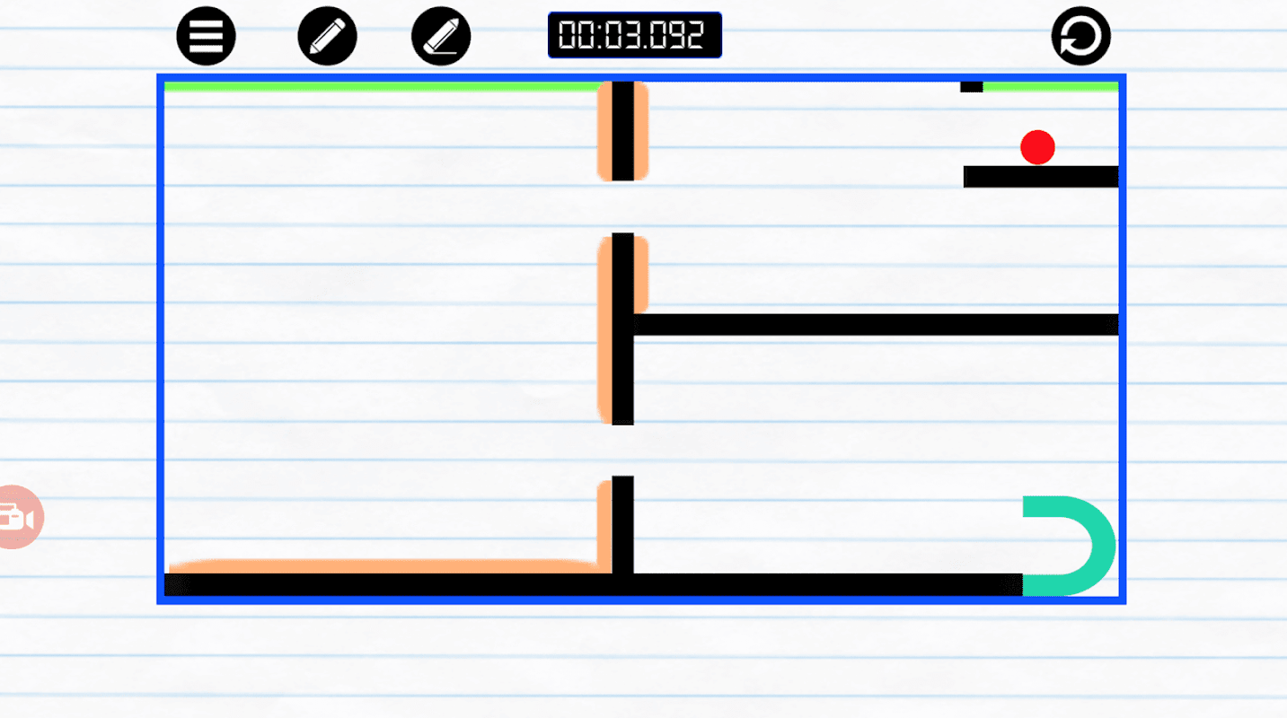이 두뇌 놀리는 물리 게임에서 빨간 공을 U에 떨어 뜨릴 선을 그립니다.