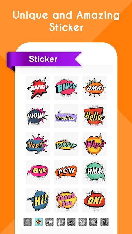 ● Choose from large number of Background, Sticker, Font, Emojis.