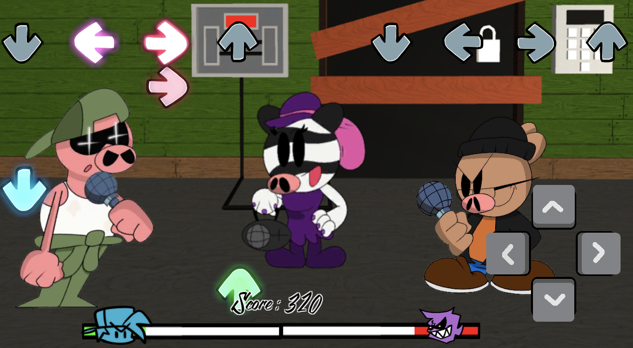 During gameplay, the opponent will sing a pattern of notes which the player must mirror by pressing the arrow keys or WASD in piggy friday night funkin . At the bottom of the screen is a bar indicating how well the player is doing in piggy friday night game music .