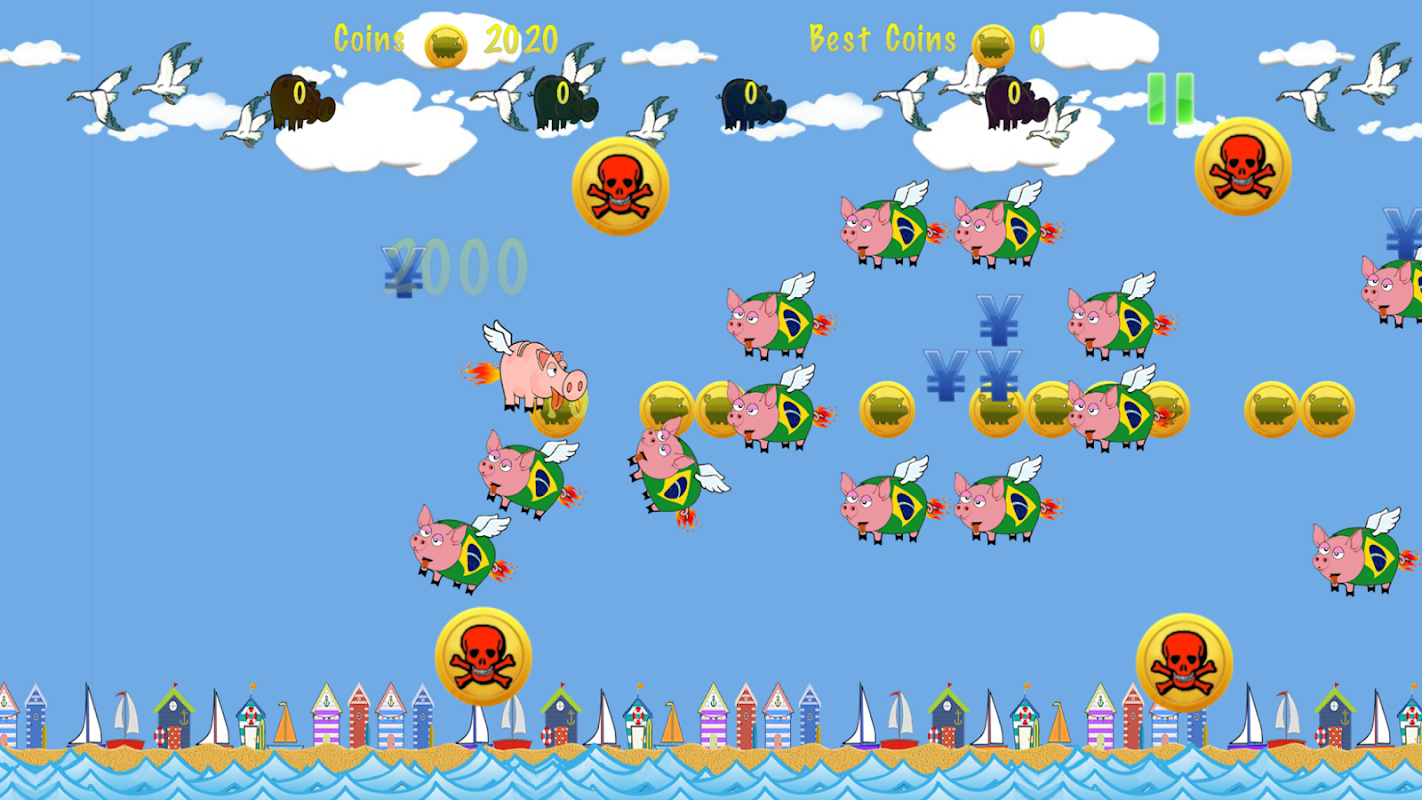 PiggyPopPing is fast and fun with entertaining, original artwork and animation. The money-hungry pink pig hero must pop through a horde of piggy banks from around the world to get lots of treasure. Find different power-ups to help get more riches - The green pig power-up sops up all the treasure in the game scene! Just tap the screen in the direction of the piggy banks and pop your way to achieving high scores!