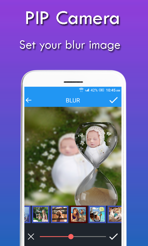 PIP Camera Photo Editor allows you to maker your photo in heart, glass, love, hand, mockup phone, board and more.