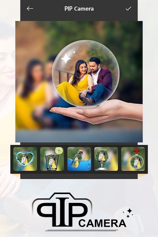 ❖ PIP Camera: The new graphics shape used in the creativity of photo like a bottle, glass, aquarium, hand camera, bubbles, etc