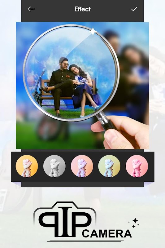 You can select a photo from the gallery or camera & edit image by applying very sweet frames. At last, save the image, share the image with your friends, family, and followers. PIP Camera Effect application allows you to make your photo more beautiful by giving camera effects in glass, hand, camera, board and more.