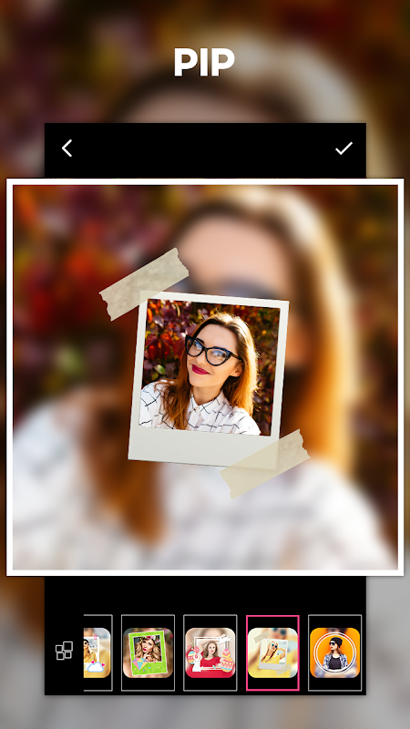 PIP 효과는 배경이 흐릿한 동일한 이미지로 다른 사진 프레임에 사진을 설정합니다.