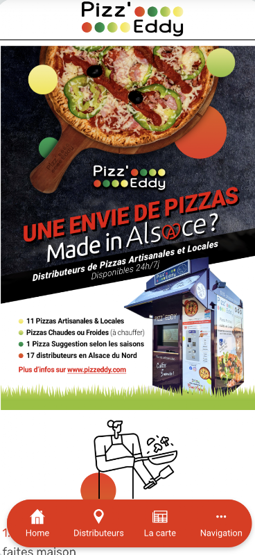 Pizz'Eddy에서 독점적인 모바일 애플리케이션을 통해 장인의 피자 자판기라는 혁신적인 개념을 발견하십시오.