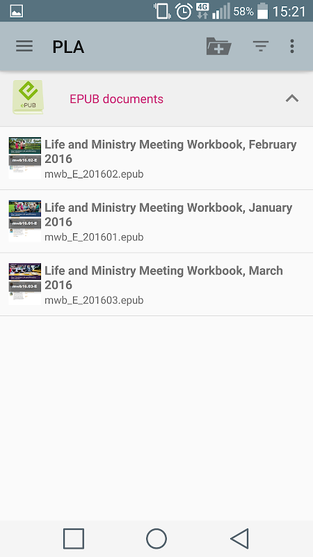 예를 들어 jw.org 웹 사이트의 발행물 섹션에서 다운로드 한 파일을 응용 프로그램의 파일 모음에 추가 한 다음 해당 지역의 서적, 잡지, 브로셔 등의 목록에서 검색 할 수 있습니다.