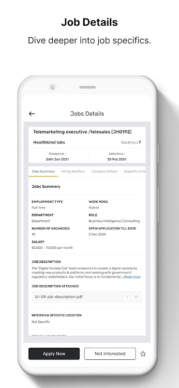 📝 채용 지원: 다양한 산업과 부문에 걸친 다양한 채용 목록 풀을 살펴보세요. 우리의 직관적인 인터페이스를 사용하면 모바일 장치의 편리함을 통해 직접 쉽게 위치를 탐색하고 지원할 수 있습니다. 지루한 구직 활동에 작별 인사를 하고 효율성을 높이세요!