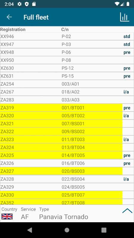 전체 생산 목록, 국가 개요, 차량 목록을 보거나 원하는 비행기 세트를 검색 할 수 있습니다. 실제로 수행 할 수있는 검색 또는 표시되는 평면 수에는 제한이 없습니다.