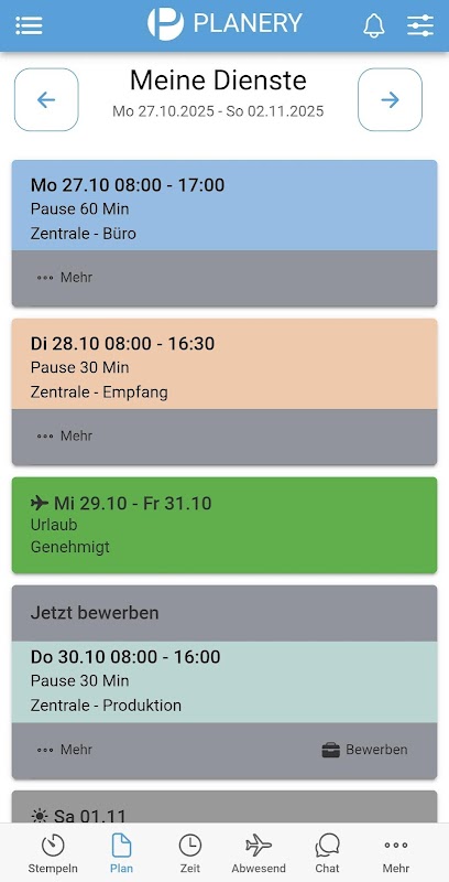 Planery는 현대 근무 일정과 휴가 계획 및 시간 기록을 결합하여 하나의 소프트웨어로 모든 작업을 수행할 수 있습니다.