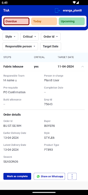Solvei8의 고급 계획 도구인 Plani8을 사용하면 주문에 대한 시간 및 실행 계획을 효율적으로 계획하고 추적할 수 있습니다. 또한 주요 경로 계산을 기반으로 문제 관리를 강조하는 라인 수준 봉제 계획을 촉진하고 그룹 수준 용량 계획에서 의사 결정을 가능하게 합니다. 그룹, 클러스터, 공장 수준을 포함한 다양한 보드 수준을 통해 사용자는 자신의 요구에 맞는 뚜렷한 이점을 얻을 수 있습니다.