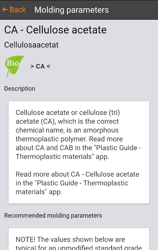 This app replaces the processing part of our previous app Plastic Guide and is intended to spread knowledge of thermoplastics and focus on processing.