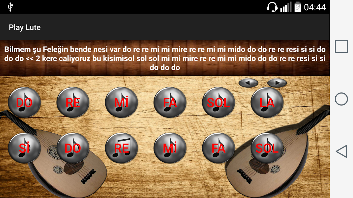 You can play oud with this application. Through practical and easy notes, you can have fun time. You'll feel like playing a real oud in your smart phone with real sounds. This application has a simple user interface, so you and your child will not be bored using it.