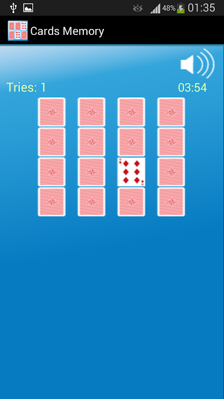 Objective of this game is to open all the hidden cards by flipping it. Just tap on a card to show the hidden object under it. Tap on another same card will keep it open. Otherwise cards will be hided again. Open all cards as fast as possible with less number of taps to set top score.