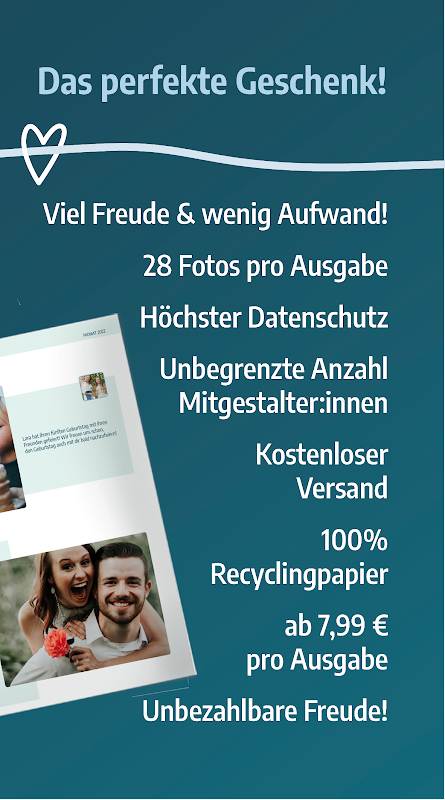 우리는 프라이부르크의 젊은 가족 스타트업입니다. 육아 휴직 기간 동안 전무이사 Helene은 조부모와 부모가 정기적으로, 무엇보다도 가족의 삶에 복잡하지 않은 방식으로 참여하고 (증) 손자의 사진을 찍을 수 있도록 하고 싶었습니다. 이것이 가족신문에 대한 아이디어가 떠올랐고 조금씩 구현된 방식입니다. 늘 함께하는 우리 가족신문으로 여러분과 여러분의 가족들에게 심플하고 단순한 기쁨을 선사하기를 바랍니다!