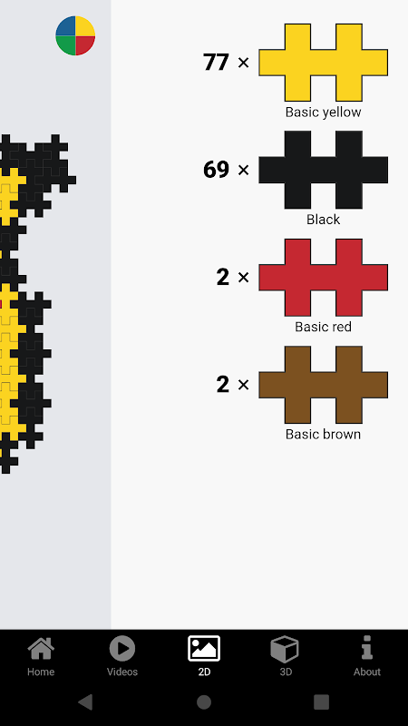 • 필요한 블록과 색상 수를 표시합니다.