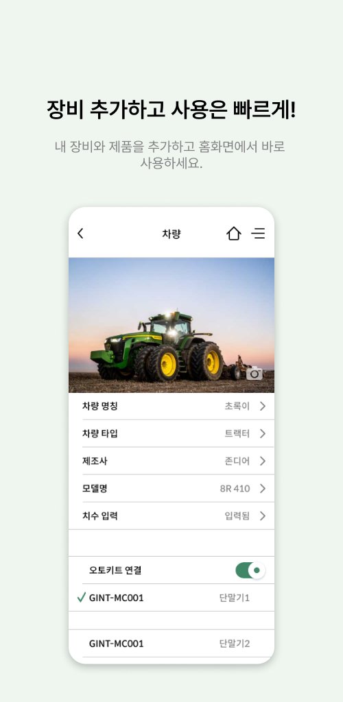 농지 정보 설정, 농기계 관리, 농작업 일지 관리 등으로 효율적인 농작업이 가능합니다. 앱의 기능이 지속적으로 업데이트 되어 사용자에게 보다 편리한 농작업 서비스를 제공합니다.