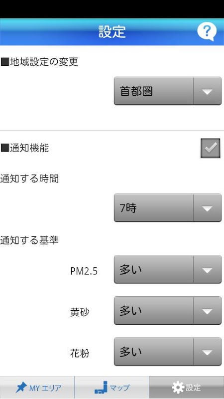 PM2.5 황사 꽃가루 알려 수준은 개별적으로 설정할 수 있기 때문에, 알고 싶은 정보가 쉽게 알 수 있습니다.