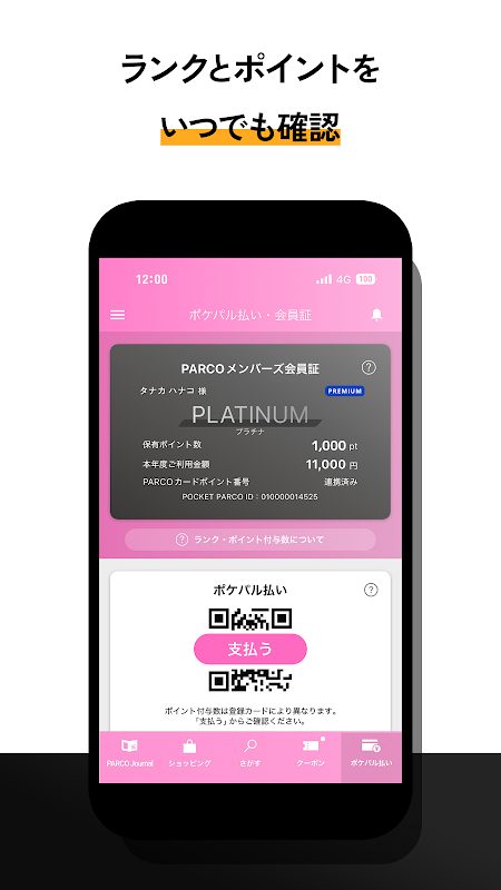 PARCO 멤버스에 등록 후, 앱 "POCKET PARCO"에서 로그인하면 회원증이 표시되어 랭크를 확인할 수 있습니다.
