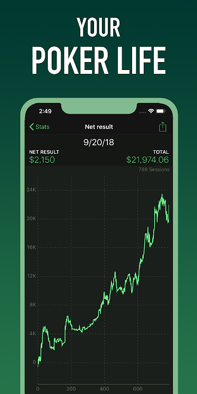 응용 프로그램은 당신에게 당신의 현금 게임이나 토너먼트의 모든 주요 통계를 보여줍니다. 아름다운 그래프로 통계의 진화를보십시오!