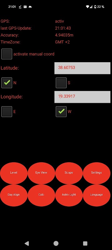 GPS는 고도와 함께 귀하의 위치에 대한 가장 정확한 정보를 제공하고 북극성의 위치를 계산하며 북극성의 위치, 시간각, 정확한 위치를 그래픽으로 보여줍니다....