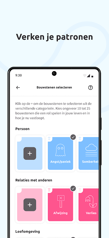 첫 번째 대화 후에는 Polly에서 자신의 상황을 알려주는 빌딩 블록을 수집합니다. 슬픔이나 걱정 등 당신을 괴롭히는 감정일 수도 있습니다. 또한 논쟁이나 돈에 대한 걱정과 같이 환경에 영향을 미치는 것일 수도 있습니다. 이러한 빌딩 블록을 사용하면 패턴 탐색기와의 두 번째 대화에서 어떤 패턴이 갇혀 있는지 함께 조사할 수 있습니다.
